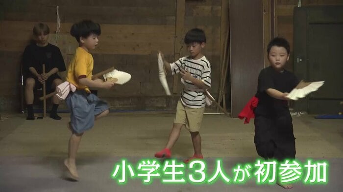 また、初めて参加する小学生3人も、「三人立(さんにんだち)」と呼ばれる演目を一生懸命練習していた。
