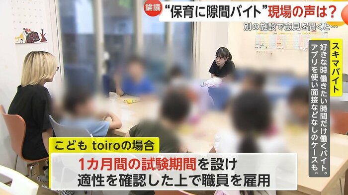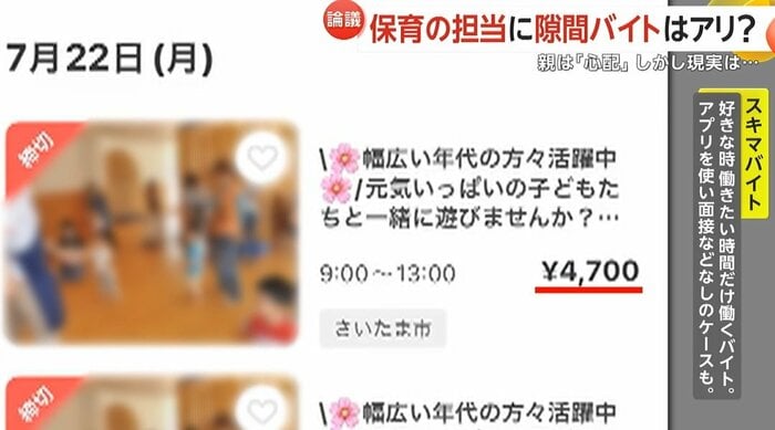 保育現場の職員をアプリで採用することについて、子どもを持つ親からは不安の声が上がった。