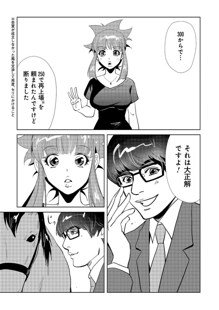 “種”は父馬。“サマー”はサマーセール。それでは“肌”は…?競馬用語で頭を悩ませたときに読むべきマンガ マンガ『会社をやめて馬主やります! アキコノユメヲ』(第32話・後編) 信田朋嗣 栗元健太郎/咲 2024年9月30日 月曜 午前7:01 #1 … #63 #64 #65 … #80 次ページ“中央”のお客が帰ってホッと一息 1 2 3 4 5 #1 … #63 #64 #65 … #80 【よく一緒に読まれている記事】 【初めから読む】“サラリーマン馬主”も夢じゃない!会社を辞め、「ただいま」と競走馬を生産する実家に戻ってきた娘… 信田朋嗣,栗元健太郎/咲の他の記事 2歳馬の身体にとって実は厳しい調教と遠征…その判断の重さに馬主が耐えるために必要な“声” エンタメ 2024年11月25日 2歳牝馬で全治6ヶ月の怪我…馬主が考える“パンク”した馬の転売・放牧・引退、そして殺処分という4つの選択肢 エンタメ 2024年11月25日 2歳牝馬にとって度重なる遠征は体の負担が大きい…それでも狙いたいグランダム・ジャパンで勝利する価値 エンタメ 2024年11月18日 重賞を勝利した馬が次に狙うレースの意味。2歳牝馬がグランダム・ジャパンを狙って見える景色とは エンタメ 2024年11月18日 一覧ページへ