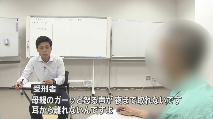 「〇〇さん、振り返ってみてどうですか?」と声をかける松村さんに受刑者は訥々と話し始めた。「まぁ…母親とかから、いろいろされていたんで。もう暴力ですかね。(お母さんが暴力振るう?=松村さん)はい、父親はもう何も関係ないみたいな感じで、全然、何も言わないです。だからもう、母親の『ガー』って怒る声が夜まで取れないです。耳から離れないんですよ」。この日の指導では、罪を犯すまでの人生を振り返った。