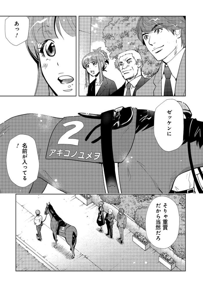 重賞レースのパドックで馬主が喜ぶゼッケンの“文字列”。地方競馬とJRAで変わる馬名の扱い マンガ『会社をやめて馬主やります! アキコノユメヲ』(第35話・前編) 信田朋嗣 栗元健太郎/咲 2024年10月21日 月曜 午前7:00 #1 … #68 #69 #70 … #80 次ページ一番人気の馬の様子は? 1 2 3 4 5 #1 … #68 #69 #70 … #80 【よく一緒に読まれている記事】 パドックで起こった馬主たちの争い⋯自分の愛馬に自信があるからこそ負けられない戦いがそこにはある 信田朋嗣,栗元健太郎/咲の他の記事 2歳馬の身体にとって実は厳しい調教と遠征…その判断の重さに馬主が耐えるために必要な“声” エンタメ 2024年11月25日 2歳牝馬で全治6ヶ月の怪我…馬主が考える“パンク”した馬の転売・放牧・引退、そして殺処分という4つの選択肢 エンタメ 2024年11月25日 2歳牝馬にとって度重なる遠征は体の負担が大きい…それでも狙いたいグランダム・ジャパンで勝利する価値 エンタメ 2024年11月18日 重賞を勝利した馬が次に狙うレースの意味。2歳牝馬がグランダム・ジャパンを狙って見える景色とは エンタメ 2024年11月18日 一覧ページへ