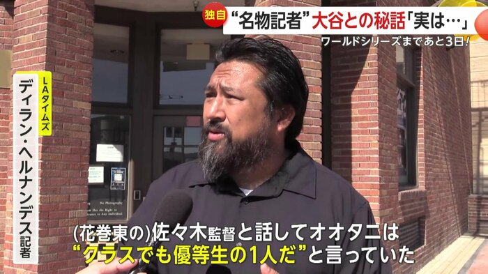 日本へ1週間出張して、オオタニの高校まで取材しに行ったんだ。(花巻東の)佐々木監督と話して、オオタニは”クラスでも優等生の一人“だと言っていた。水泳の先生に話を聞けば、“水泳でも集中力を切らさず、オリンピックも夢じゃない”と言っていた。
