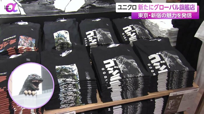 歌舞伎町のフォトスポットとしても人気を集めるゴジラのTシャツなどもラインナップされている。