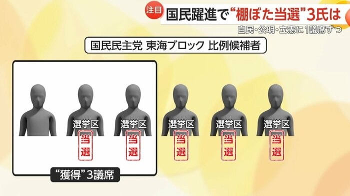 “棚ぼた当選”が起こった比例の東海ブロックでは、国民民主党からいずれも小選挙区との重複で6人が立候補。