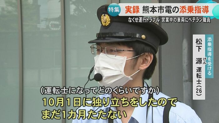『添乗指導』とはベテラン職員が営業中の車両に乗り込んで乗務員の技能を監査し教育するもの。熊本市電は運行トラブルが相次ぎ、安全への態勢立て直しが求められていて、強化しているものの一つが『添乗指導』だ。今回、初めてその現場にカメラが入った。