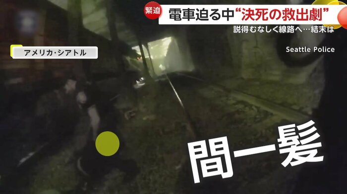 アメリカで電車が近づく中、線路に倒れた男性を警察官が救出する様子がカメラにとらえられた。