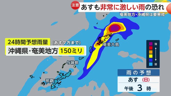 奄美地方や沖縄県は、10日にかけても活発な雨雲がかかる恐れがあり、10日夕方までに予想される雨量は150mmとなっている。
