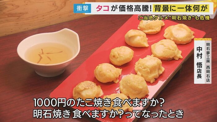 明石夢工房西明石店・中村悟店長:1000円のたこ焼食べますか?明石焼食べますか?ってなったときに、どうしても抵抗あると思う。油でも安いやつあったら探してみてとか、ちょっとずつ努力していますね。