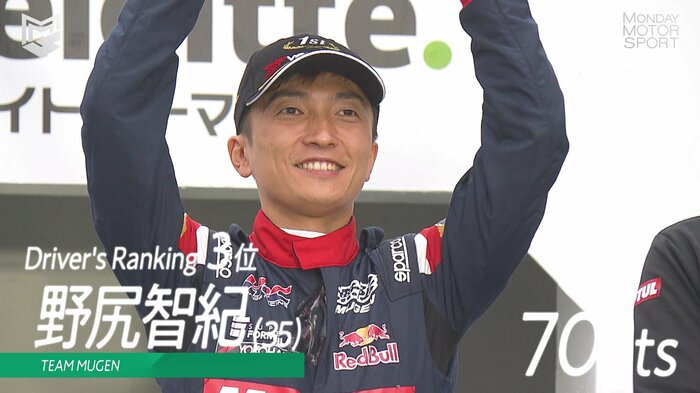 そして過去2度の王座を獲得している野尻智紀(35)がランキング3位(70ポイント)につけている。