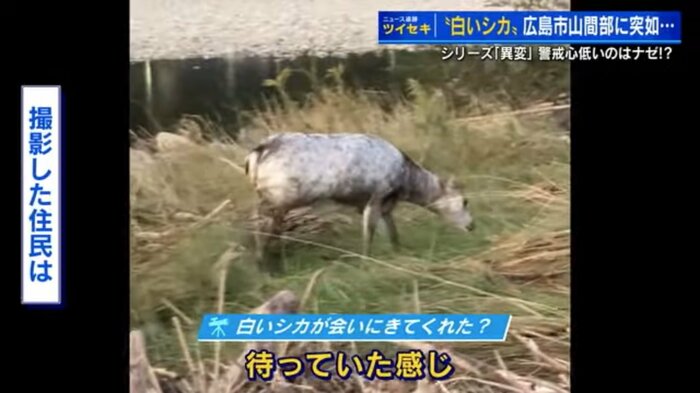 広島市の山間部に白いシカが現れ、話題になっている。白いシカは“神の使い”とも言われるが、2度目撃し、撮影もした地域住民は「体の調子が良くなった気がする」と語る。