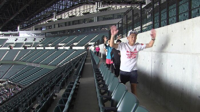 「おはようございます。現在、午前8時だが、エスコンフィールドにはランニングウェアを着た方々が大勢集まっている」(糸口 真子アナウンサー)