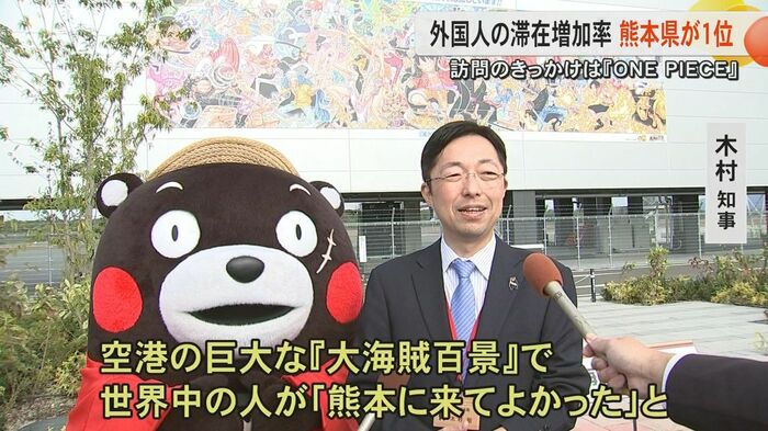 熊本県の木村敬知事は「空港の巨大な『大海賊百景』で、世界中の人が『熊本に来てよかった』と『ワンピースの聖地に来た』と喜んでくれることを願っている」と述べた。
