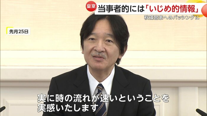 その一方で、秋篠宮妃・紀子さまが9月の誕生日にあたっての文書で「思い悩むことがあります」とつづられた秋篠宮家へのバッシングともとれる情報については、少し踏み込んで「当事者的に見るとバッシング情報というよりもいじめ的情報と感じるのではないかと思います。おそらく、あれはなんて言うのでしょうね。『いいね』じゃない方の、逆の(低評価ボタン)をクリックするぐらい、それ以外、私はなかなか思いつかないですね」と思いを明かされた。
