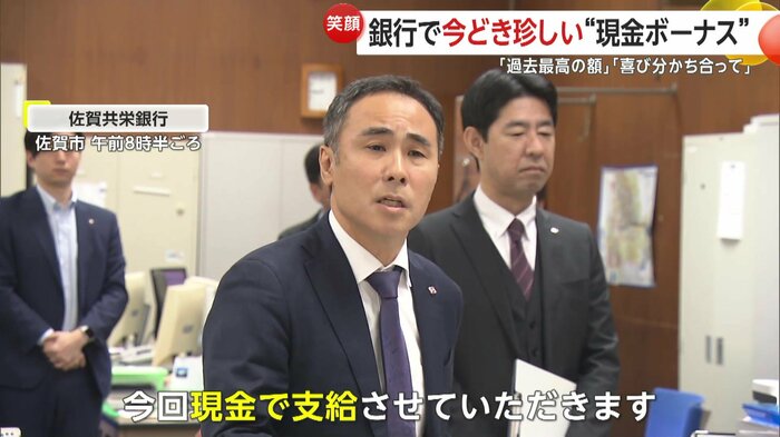 佐賀市の銀行で5日、今どき珍しい“現金渡し”のスタイルでボーナスが支給された。実に46年ぶりのことだという。