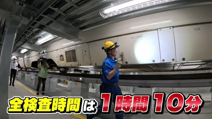 検査は「床下」「屋根上」「客室内」の大きく3つに分けられ、約1時間10分の時間内に12両編成すべてをチェックする。