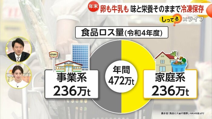 卵や牛乳を冷凍保存することで、賞味期限切れによる廃棄を防げるという。