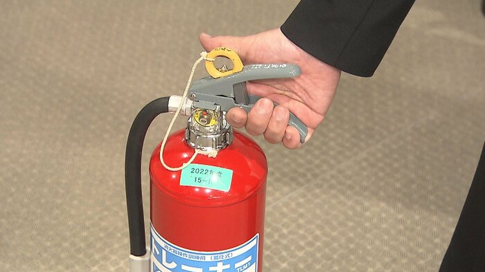 一般的な消火器の重さは約5kgで、放射時間は約14秒、放射距離は約3mから8mだという。