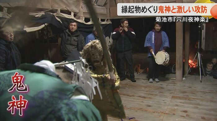 熊本・菊池市北部の小さな集落に江戸時代から伝わる正月行事『穴川夜神楽(あながわよかぐら)』が、1月5日に奉納された。御利益があるといわれる『御幣(ごへい)』をめぐり、ことしも鬼神と見物人による激しい攻防が繰り広げられた。