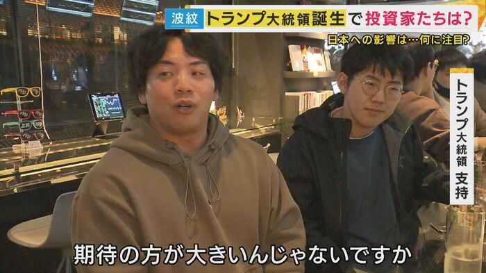 トランプ大統領支持の投資家:僕も期待の方が大きい。今、オールタイムハイ=最高値を更新しているということだと思うんですけど、今後さらに成長していってくれたらなというふうに祈ってます。