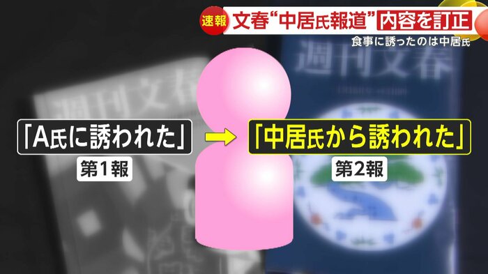 つまり、当初、第1報で「A氏に誘われた」としていた部分が、第2報では「中居氏から誘われた」と重要な部分を訂正していたのだ。