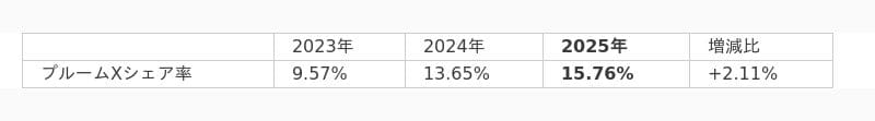 ⬛︎プルームXのシェア率は伸長。昨年から約2%増