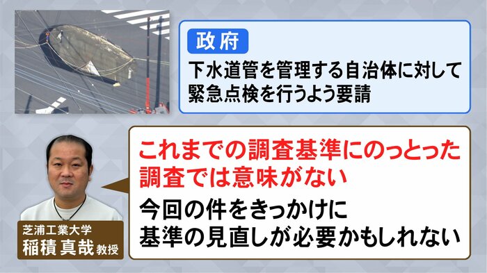 今回の事故を受けて、政府は自治体に対して緊急点検を要請していますが、地盤工学が専門の芝浦工業大学の稲積真哉教授は、「これまでの調査基準にのっとった調査では意味がない。基準の見直しが必要かもしれない」と話しています。
