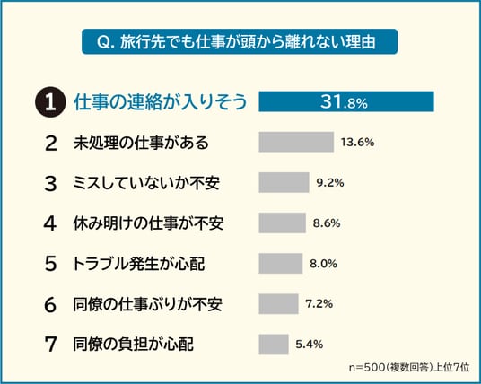 ・旅行先でも仕事が頭から離れない理由1位は「仕事の連絡が入りそう」