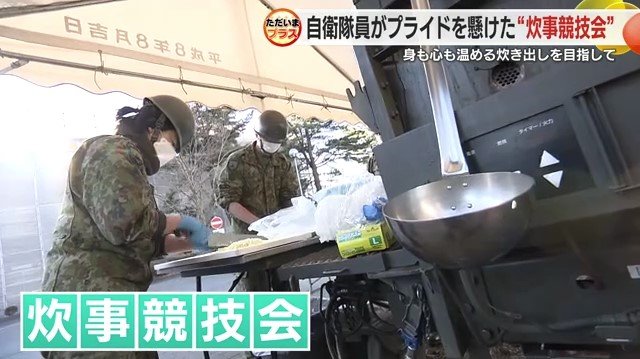 災害時における自衛隊の活動は多岐にわたる。被災者への食事の提供“炊き出し”もその1つだ。静岡県御殿場市にある板妻駐屯地では炊き出しの腕を競う炊事競技会があり、各隊が意地とプライドをぶつけ合った。