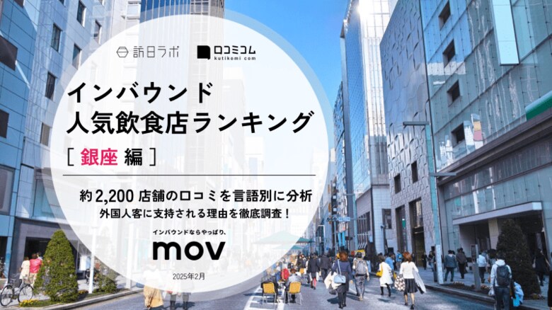 業界最大級のインバウンドビジネスメディア「訪日ラボ」及び 店舗向け集客一元化プラットフォーム「口コミコム」を運営する株式会社mov(代表取締役:渡邊 誠、本社:東京都渋谷区、以下mov)は、銀座エリアの飲食店に寄せられた最新の口コミデータから、独自の『インバウンド人気観光地ランキング』を発表しました。