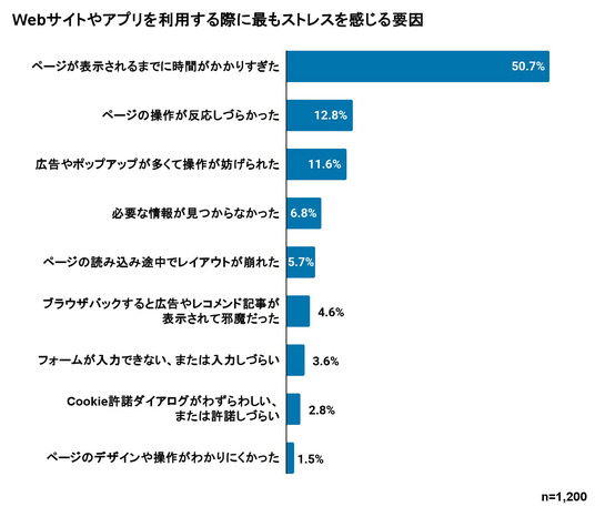 【2】Webサイト・アプリ利用時の最大のストレス要因は「ページの表示速度の遅さ」