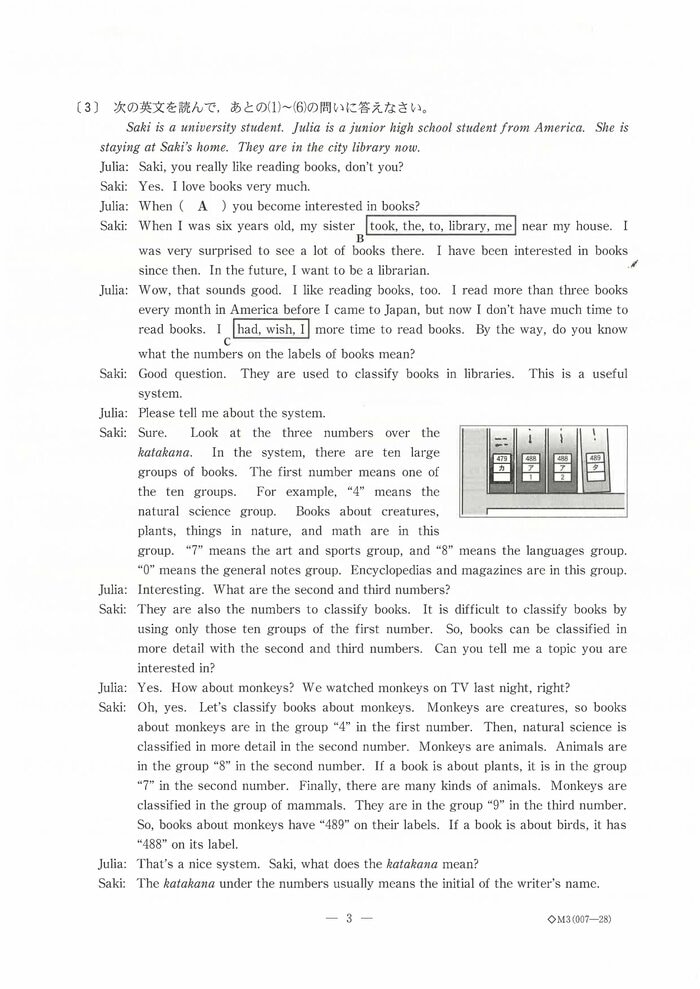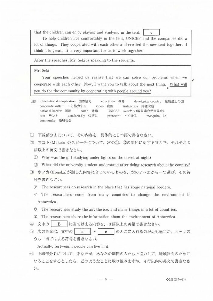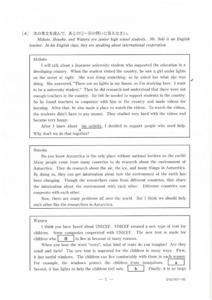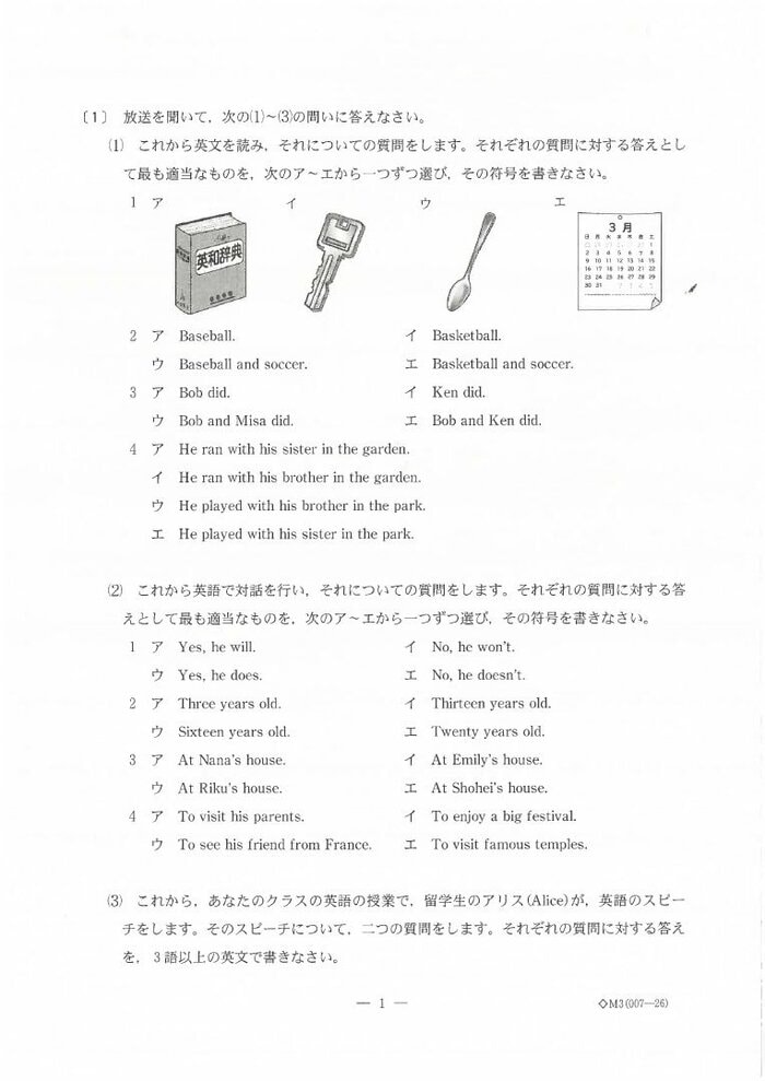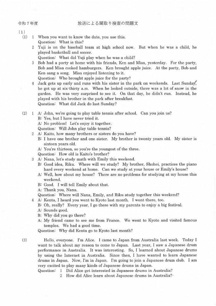 【正答速報・英語】新潟県の公立高校一般入試 “英語”の問題と正答表 約1万2000人が試験に臨む NST新潟総合テレビ 2025年3月5日 水曜 午後5:21 【正答速報】新潟県の公立高校一般入試 #1 #2 #3 #4 #5 #6 3月5日に行われた新潟県の公立高校の学力試験。今年は約1万2000人の受験生が試験に臨んだ。3時間目に行われた英語の問題と解答について発表された。 英語の問題 英語の問題は以下の通り この記事の画像(9枚) 英語の正答表 英語の正答表は以下の通り 合格発表は3月13日に行われる。 (NST新潟総合テレビ) NST新潟総合テレビ 新潟の最新ニュース、身近な話題、災害や事故の速報などを発信します。 1 2 【正答速報】新潟県の公立高校一般入試 #1 #2 #3 #4 #5 #6 NST新潟総合テレビの他の記事 新潟県知事 福島第一原発視察「二度と起こしてはならない事故と実感」柏崎刈羽再稼働の判断材料すべて揃い近く考え表明 都道府県 2025年11月19日 魚沼市で積雪30センチ「こんなに積もるとは…」 冬型の気圧配置は次第に緩むも土砂災害に警戒 新潟 都道府県 2025年11月19日 新潟駅南にオープンしたビアバー…1年経たずに破産 クラフトビールを立ち飲みスタイルで提供 負債額は約4000万円 都道府県 2025年11月19日 滋賀・草津市の男子中学生(14)が“受け子”で新潟市に…70代女性から100万円騙し取ろうした疑いで緊急逮捕「受け子としてお金をとりに来た」 都道府県 2025年11月19日 一覧ページへ