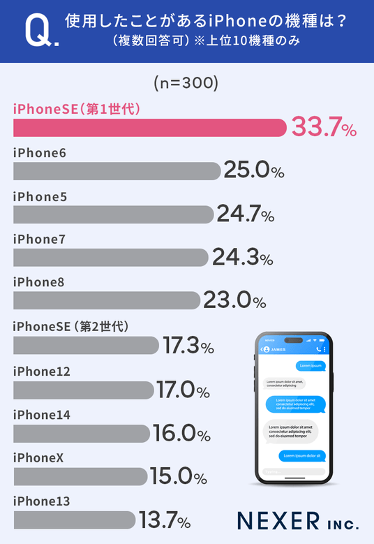 もっとも多かったのは「iPhoneSE(第1世代)」で、33.7%と3割以上の方が使用したことがあるようです。