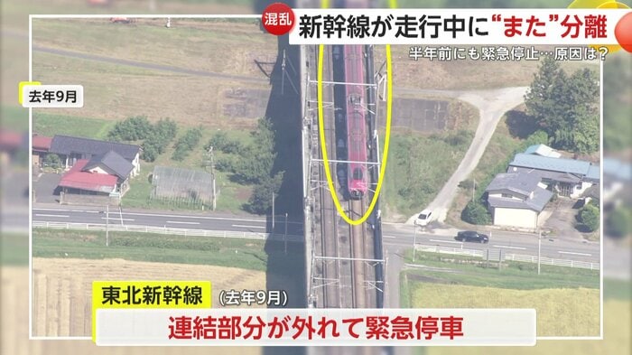 東北新幹線を巡っては、半年前の2024年9月、連結部分が外れて緊急停車するトラブルが起きたばかりだった。