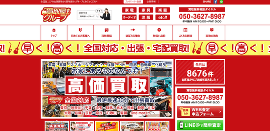 定期的に買取価格アップキャンペーンを実施している点も魅力です。LINE査定・Web査定も可能なので、出張買取前は、おおよその見積もり額を把握したうえで依頼できます。