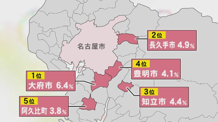 その影響は3月18日に公表された地価公示にも表れています。愛知県の住宅地の上昇率トップ5をみると、1位の大府市をはじめ、いずれも名古屋近郊の自治体が並びました。