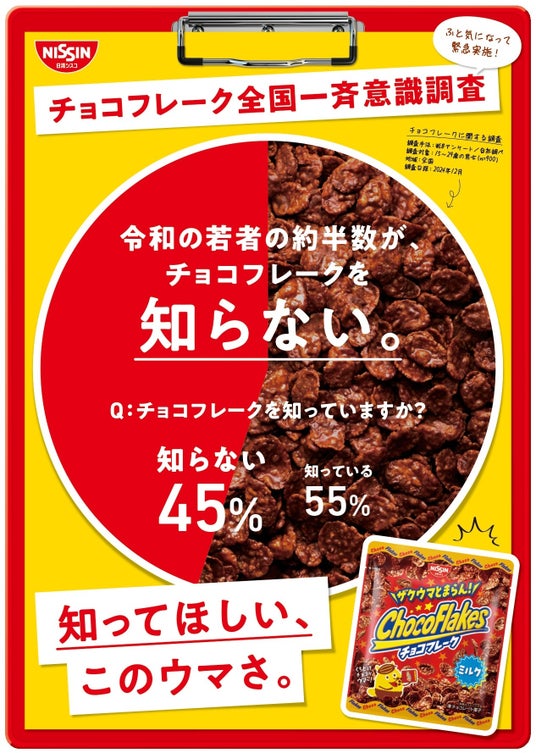日清シスコ、「チョコフレーク全国一斉意識調査」を実施!発売から50年以上経つロングセラー商品なのに…「チョコフレーク」意外と知られていない問題。約半数は日清シスコ「チョコフレーク」を知らない!
