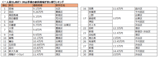 【調査対象駅】SUUMOに掲載されているJR山手線沿線の駅(掲載物件が20件以上ある駅に限る)