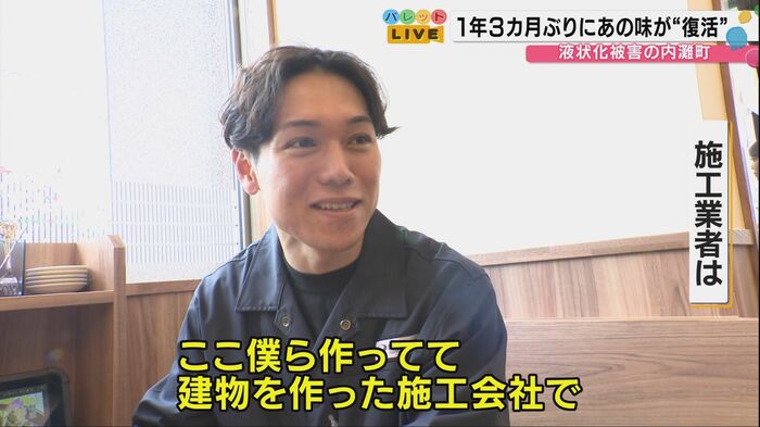 店舗の施工業者も客として来店した。「ここの店の建設に携わってきた分、今日のオープンに立ち会いたくて。こんなたくさんの人の応援というか、支援があって、山岸さんにも(復活への)色んな思いがあって…その思いに僕らもちょっと答えられたのかなって。」