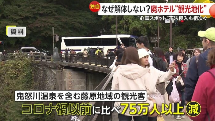 栃木県日光市で人気の鬼怒川温泉にある“廃ホテル”が、“観光スポット化”で影を落としている。