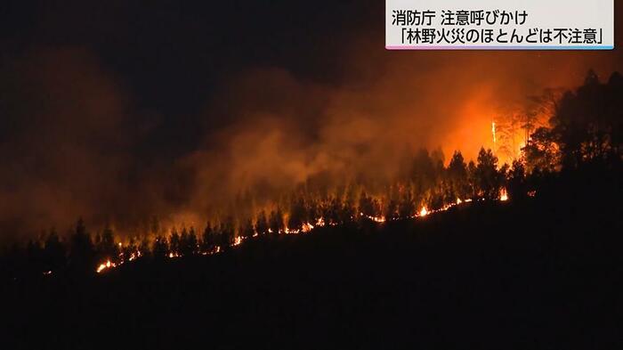 林野火災は、空気が乾燥し強い風が吹く1月から4月に多いということだ。林野火災の多くは一人ひとりの注意で防ぐことができるが、発生すると「延焼が早く、消火隊の立入りや水も限られることから、消火活動が困難」だという。消防庁では、「山に入る際は、火の取扱いに十分気をつけてほしい」と呼びかけている。