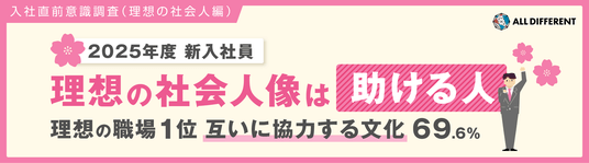 累計13,000社420万人以上の組織開発・人材育成を支援するALL DIFFERENT(オールディファレント)株式会社(所在地:東京都千代田区 代表取締役社長:眞崎大輔)および「人と組織の未来創り(R)」に関する調査・研究を行うラーニングイノベーション総合研究所(R)は、2025年1月21日~3月7日の期間で、2025年に企業に入社する新入社員に対し、入社直前意識調査を行いました。本リリースでは「理想の社会人像」について調査・分析した結果を公表いたします。