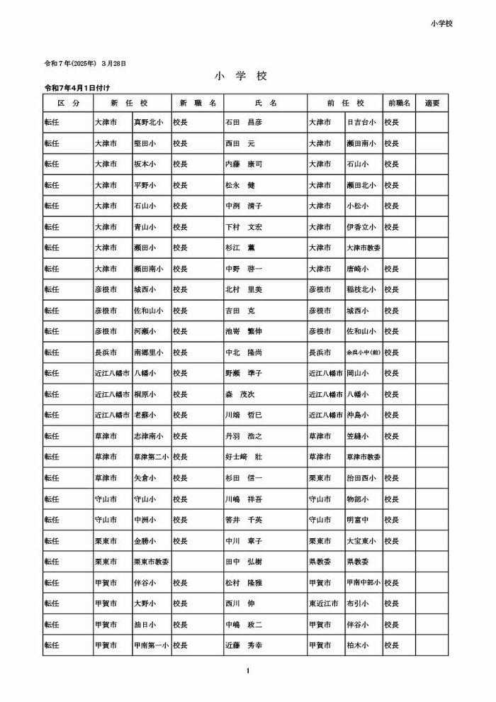 滋賀県教育委員会は、2025年度の教職員人事異動(4月1日付)を発表しました。