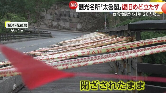 地震から1年経った今、取材班が訪れると太魯閣公園の景勝地は、ほとんどが閉ざされたままとなっていた。