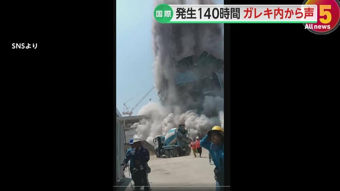 現場を捉えた映像には、作業員が「下にいる人は声を出してください!」とがれき内に向かって声をかける様子が映っていた。