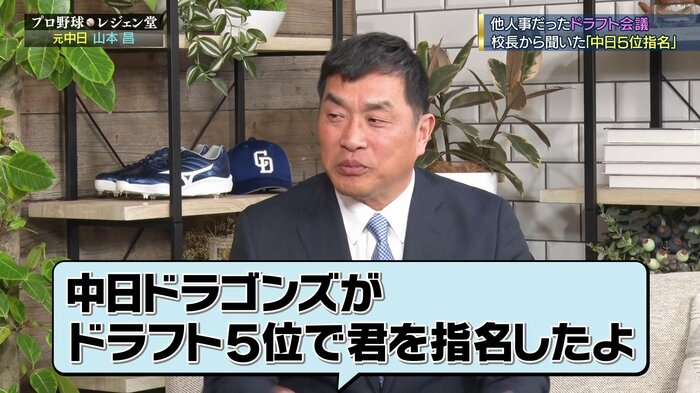 それで、校長室に入っていったら、「中日ドラゴンズがドラフト5位で君を指名したよ」って。
