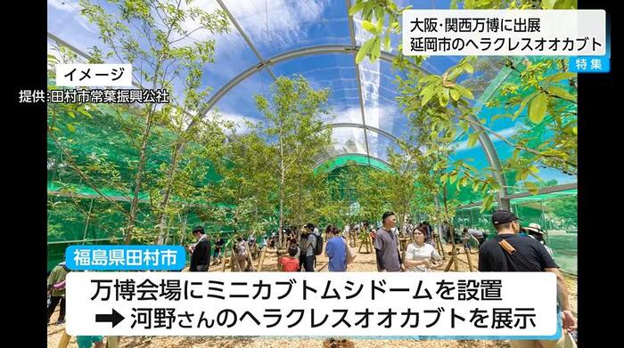 河野さんは、昆虫の町おこしに取り組む福島県田村市から「昆虫サポーター」に委嘱されている。それが縁で、今回は田村市が万博会場に設置するミニカブトムシドームに展示されることになった。