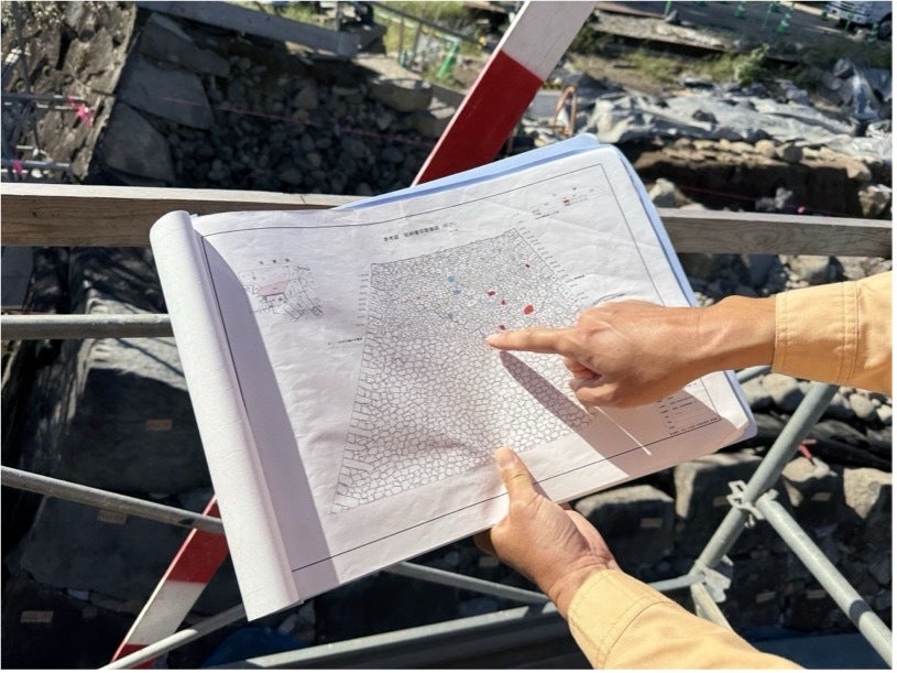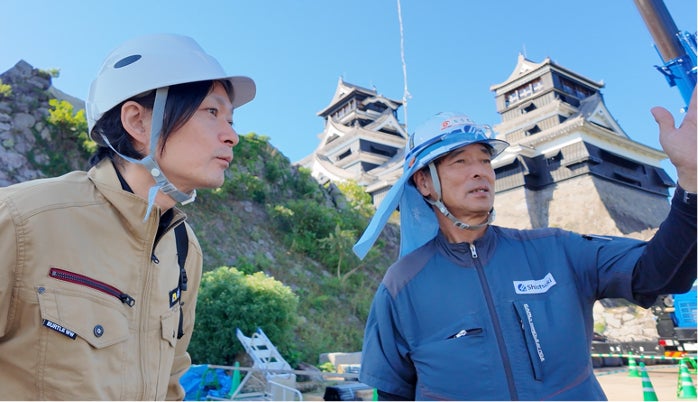 現代の名工たちが挑むのは、過去と未来をつなぐ壮大な“パズル”。崩れ落ちた数十万もの石垣を一つずつに番号を振り、写真と図面を照らし合わせながら、正確に元の場所へと戻していく。それは、気の遠くなるような手作業の連続です。その復興工事の一翼を担っているのが、日本の建設をリードする株式会社大林組(以下「大林組」)。炎天下の中、黙々と作業を続ける職人たちの姿には、尊敬の念しかありませんでした。