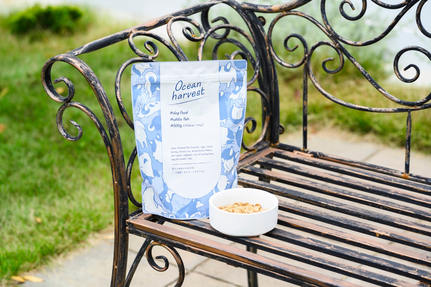 この磯焼け解決に向けた一歩として、私たちオーシャンリペアは、海藻を食べ尽くしてしまうイスズミやアイゴなどの白身魚からドッグフードを開発。2024年9月に「オーシャンハーベスト」として販売をスタートしました。