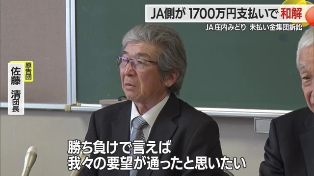 これに双方が応じる考えを示し、JA庄内みどりが1700万円を支払うことで23日に和解が成立したという。