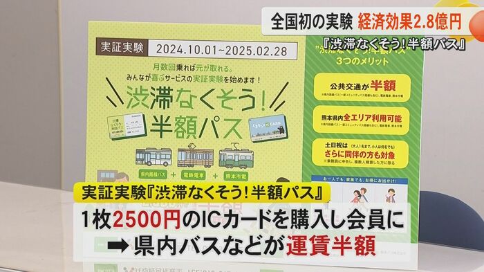 熊本県と熊本市の補助を受け2024年10月から2025年2月末までの5カ月間、実証実験が行われた。平日は午前9時以降、土・日・祝日は終日利用可能としたこの半額パス、会員1500人が目標だった。